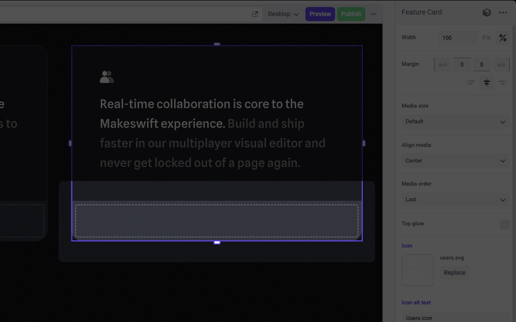 Add a Slot in the Makeswift builder to visually drop in a ReactNode.